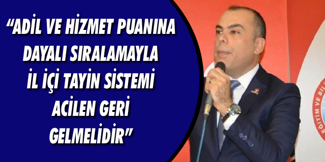 “Adil ve Hizmet Puanına Dayalı Sıralamayla İl İçi Tayin Sistemi Acilen Geri Gelmelidir”