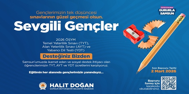 Her alanda şehrin gençlerini destekleyen Samsun Büyükşehir Belediyesi üniversite yolculuklarında da gençleri yalnız bırakmıyor. Bu kapsamda üniversite sınavına girecek olan ve gerekli şartları taşıyan öğrencilerin sınav ücretleri bu yıl da Büyükşehir Belediyesi tarafından ödenecek. Samsun Büyükşehir Belediye Başkanı Halit Doğan, “Üniversite yolculuğunda gençlerimize bir destek, bir katkı sunmak istedik. Onlar sadece hedeflerine odaklansın; biz her zaman, her alanda yanlarında olmaya devam edeceğiz” dedi.