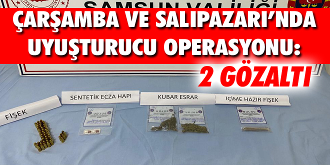 Edinilen bilgilere göre Çarşamba Cumhuriyet Başsavcılığı’nca yürütülen çalışmalar kapsamında Salıpazarı İlçe Jandarma Komutanlığı ekiplerince Gökçeli ve Bereket Mahallelerinde, Çarşamba İlçe Jandarma Komutanlığı ekiplerince de Yukarı Kavacık Mahallesi’nde bir adrese eş zamanlı operasyon düzenlendi. Düzenlenen operasyonlarda yapılan aramalarda 7 gram kubar esrar maddesi, 2 adet fişek diye tabir edilen içime hazır esrar maddesi, 2 adet sentetik ecza hap ile 51 adet mermi ele geçirildi. Olayla alakalı olarak K.D. ve Ö.E. isimli şüpheliler gözaltına alınırken, soruşturma sürdürülüyor.
