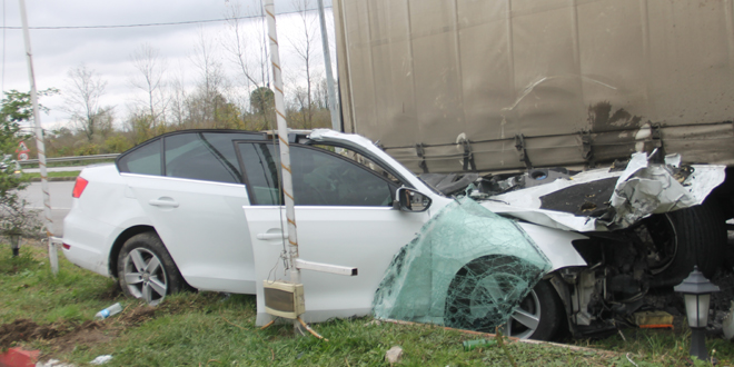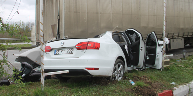 Kaza Samsun-Ordu karayolu Çarşamba ilçesi Namazlı mevkiinde saat: 14.30 sıralarında meydana geldi. Edinilen bilgilere göre Samsun istikametine seyir halinde olan V.A.(29) idaresindeki 55 KT 332 plakalı otomobil sürücünün direksiyon hakimiyetini kaybetmesi sonucu yol kenarında park halinde bulunan ve sürücüsünün D.K.(32) olduğu öğrenilen BB 171 U yabancı plakalı tıra arkadan çarptı.
