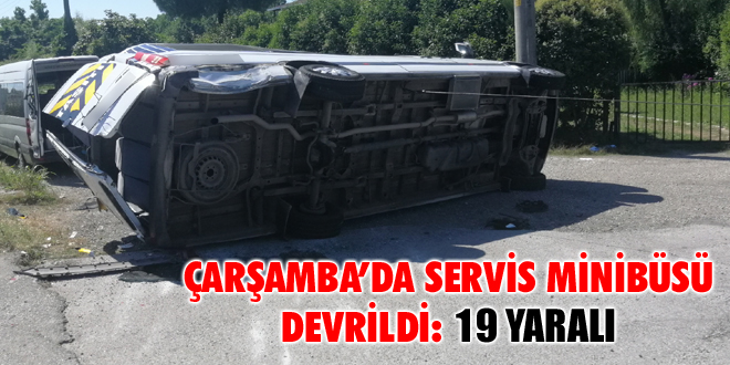 Çarşamba ilçesinde otomobille çarpışan servis minibüsünün devrilmesi sonucu 19 kişi yaralandı.