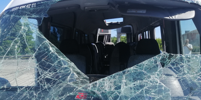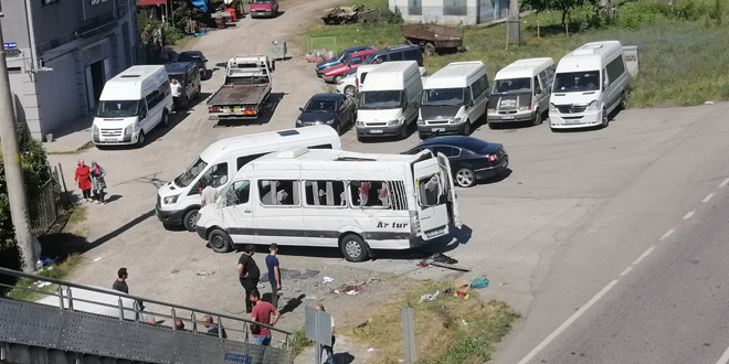 Çarpışmanın etkisiyle devrilen 55 C 6531 plakalı işyeri servisi sürüklenerek yol kenarında park halinde bulunan 55 C 6043 plakalı bir başka işyeri servisine çarptı.
