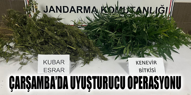 Çarşamba ilçesinde gerçekleştirilen uyuşturucu operasyonunda 9 kök kenevir bitkisi ve 633 gram kubar esrar maddesi ele geçirildi.