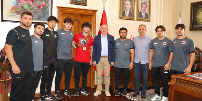 U20 Dünya Güreş Şampiyonası’nda dünya şampiyonu Alperen Berber’i makamında ağırlayan Samsun Büyükşehir Belediye Başkanı Mustafa Demir, Alperen Berber’in tarihi bir başarıya imza atarak büyük gurur yaşattığını söyledi.