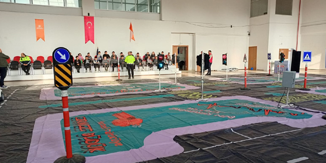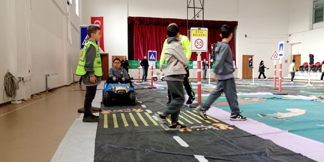 Çarşamba Gençlik Merkezi Spor Salonunda Çarşamba İlçe Emniyet Müdürlüğü Trafik Tescil ve Denetleme Büro Amirliği ekipleri tarafından minik öğrencilere polis memuru Gökhan Aybak tarafından “Mobil Trafik Eğitim Parkuru”nda verilen trafik eğitiminde karşıdan karşıya geçme, yaya önceliği, servise biniş kuralları, emniyet kemerinin önemi anlatıldıktan sonra parkurda uygulamaya geçilerek uygulamalı olarak ilkokul öğrencilerine eğitim verildi.