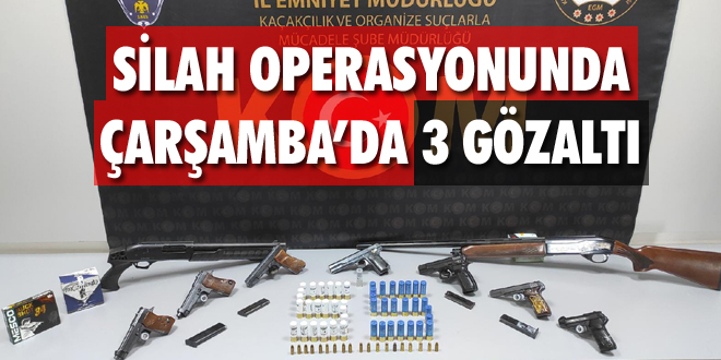 Samsun merkezli 3 ilde gerçekleştirilen silah operasyonunda Çarşamba’da da 3 şüpheli gözaltına alındı.