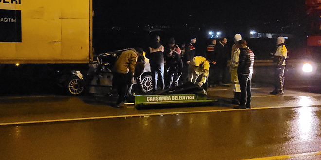 Çarşamba ilçesi Çınarlık mevkiinde TIR’ın altına giren otomobilin sürücüsü hayatını kaybetti.